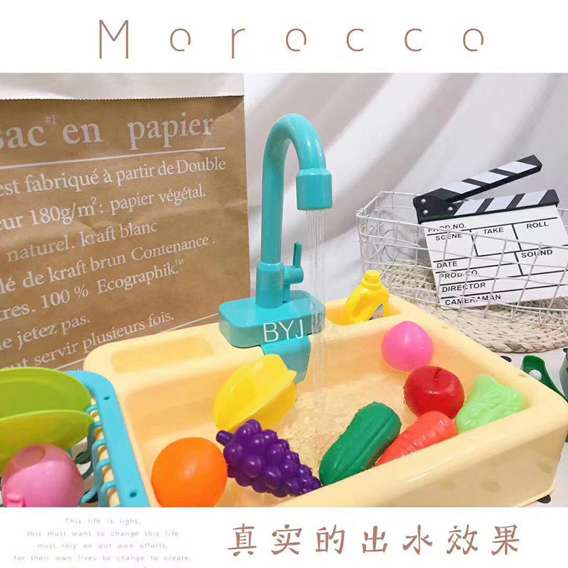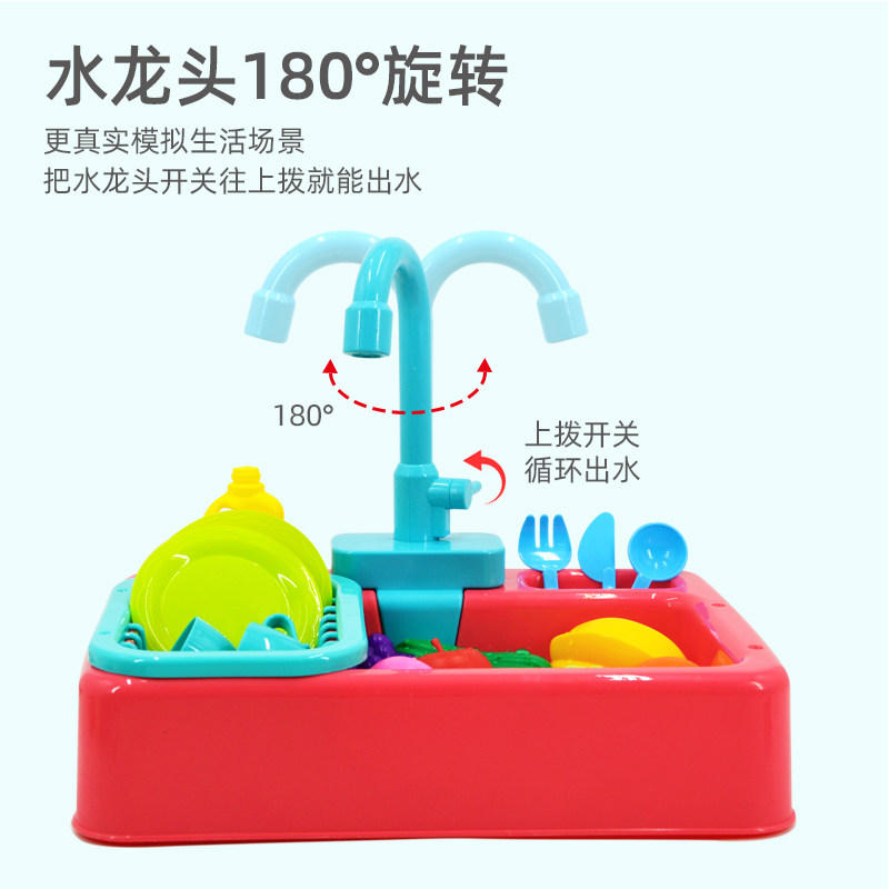 Children dishwashing basin electromechanical automatic circulating water outlet male girl over home kitchen simulation dishwashing pool table slot toy-Taobao