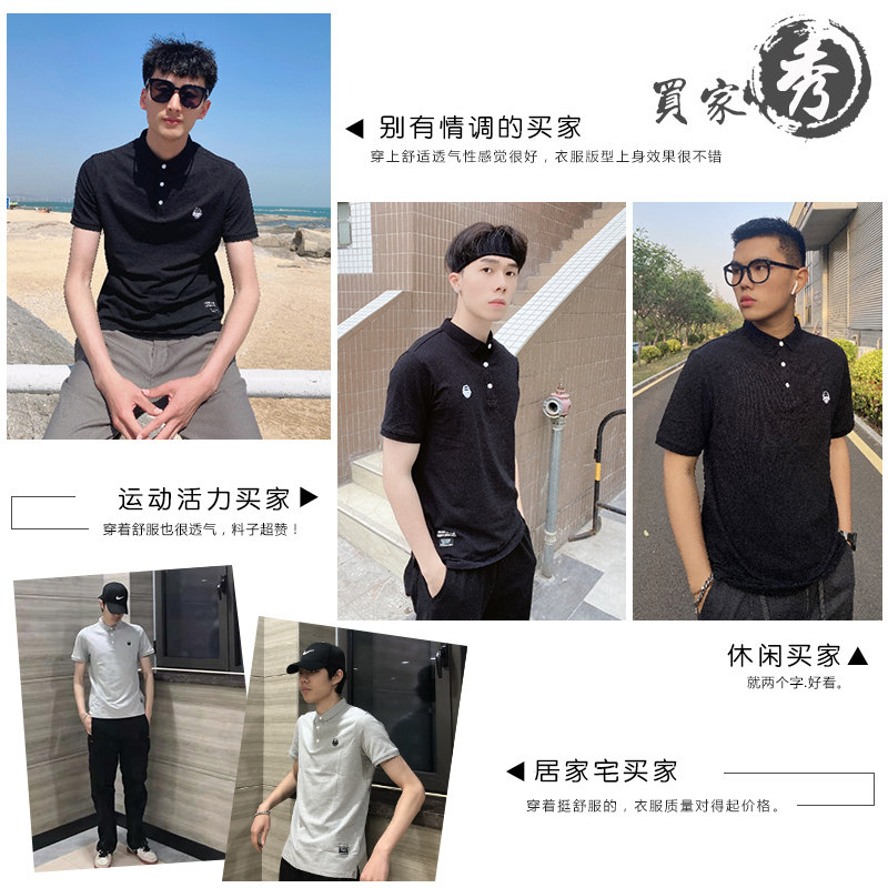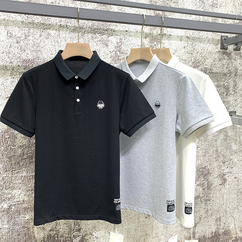 Summer short-sleeved ice silk polo shirt men's simple Hong Kong trend brand youth embroidery pure cotton Japanese lapel base shirt thin