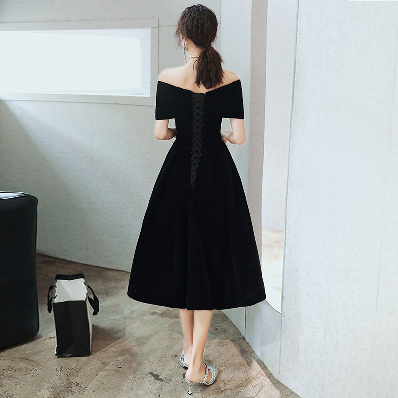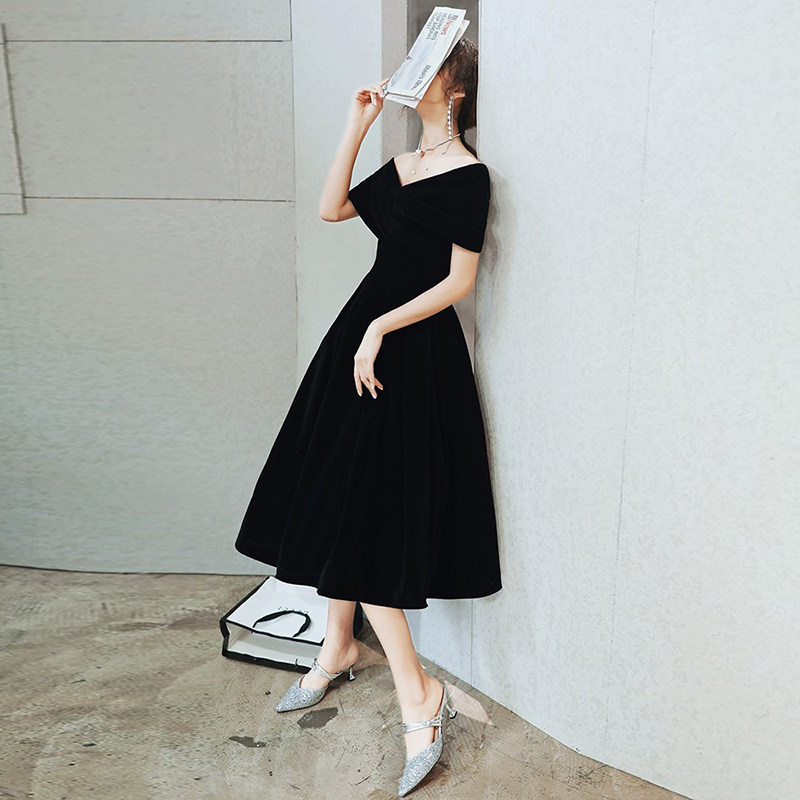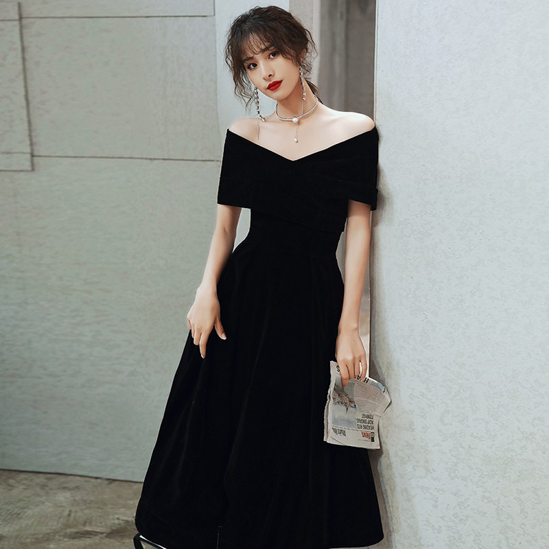 Evening dress dress with black high-end large size for wearing a slim one-shoulder temperament dinner annual meeting small gown host