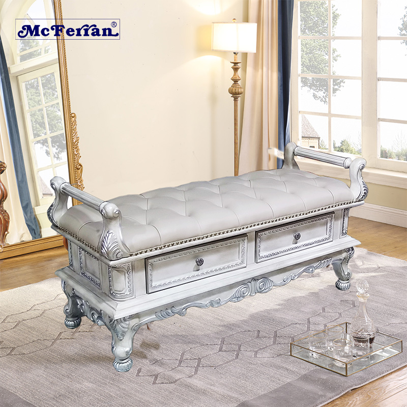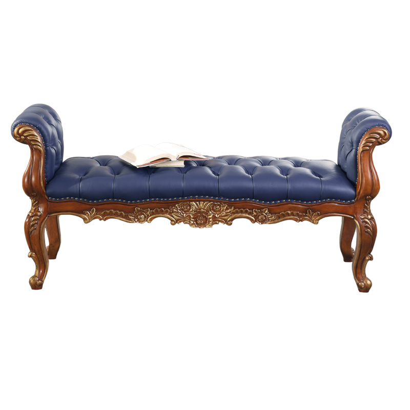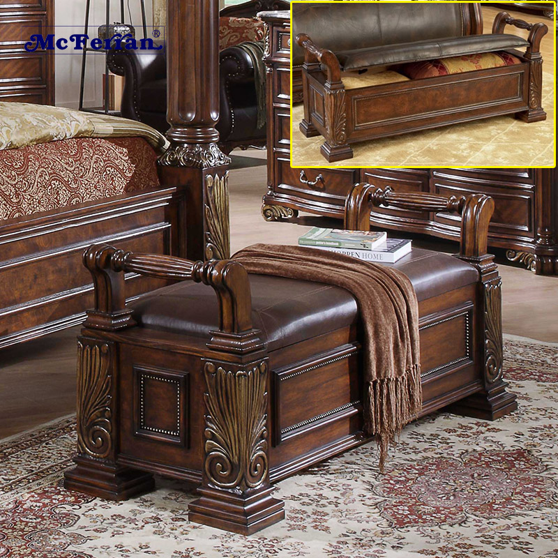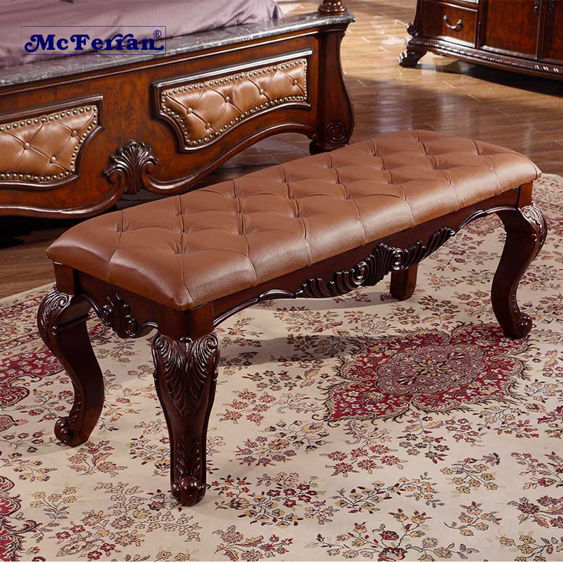 American-style solid wood bed end stool luxury private custom leather bed stool retro carving shoe changing stool bedroom storage cabinet