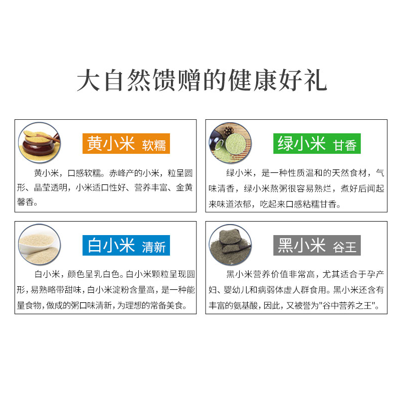 Inner Mongolia Red Peak Four Colors Millet Yellow Millet Black Millet White Millet White Millet Green Millet Gift Box Moon Rice Baby Porridge