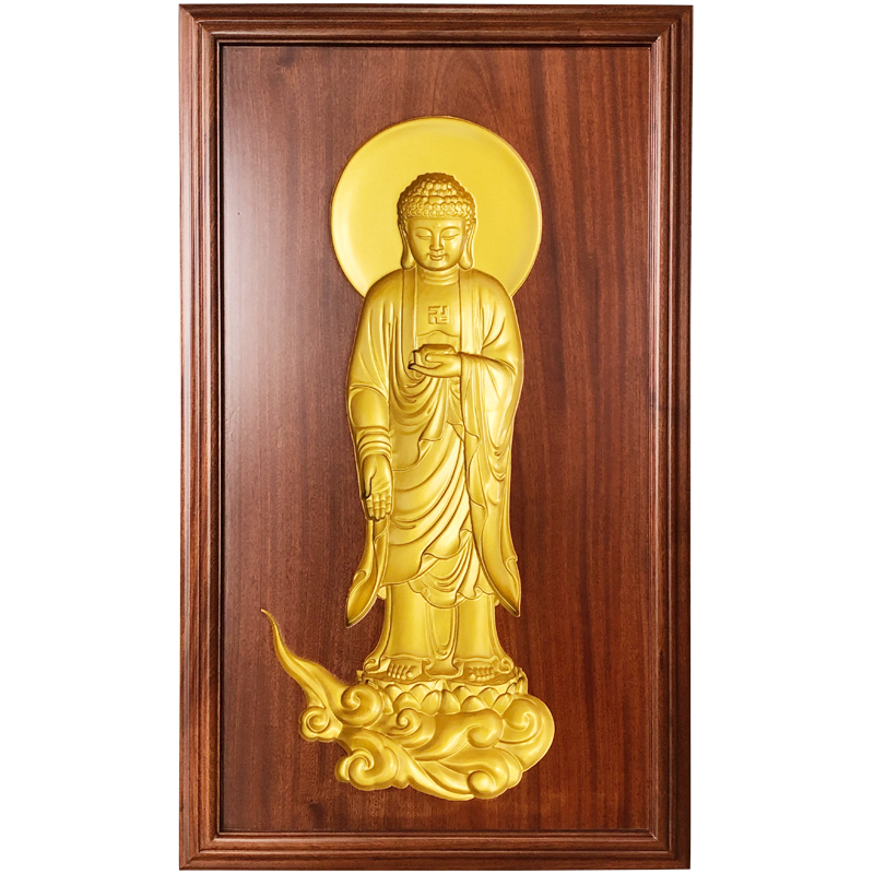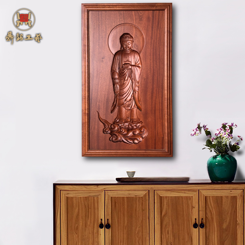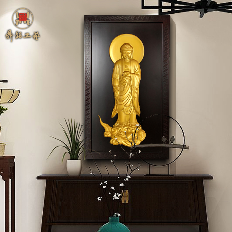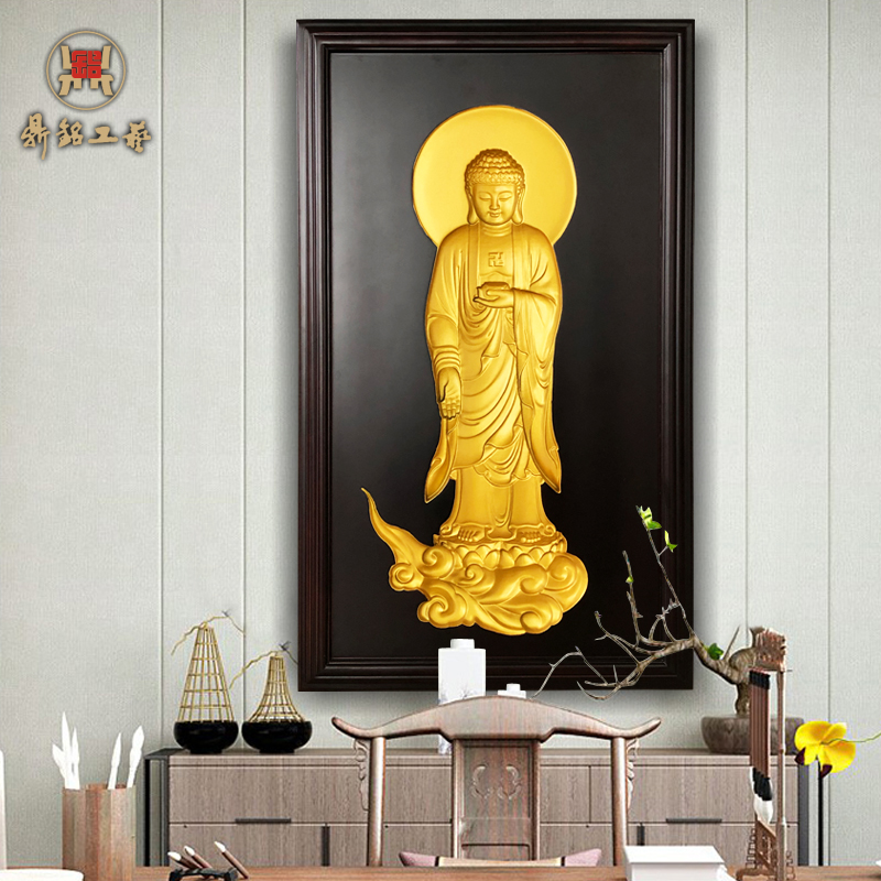 3D Amitaba Buddha reverse concave sculpted decoration hanging plaque Buddha Hall Living room foyer Plaque Concave Engraving highlights the solid carving technique