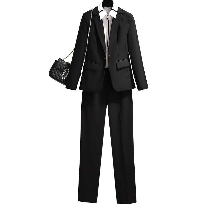 Single-piece black long-sleeved suit Single-piece dark blue long-sleeved suit Black long-sleeved suit Black suit pants Dark blue long-sleeved suit Dark blue trousers Black long-sleeved suit Black skirt Dark Blue long-sleeved suit