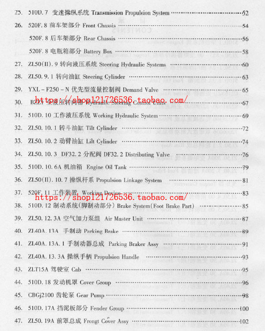 Xu Worker Wheeled Loader LW520F Parts Catalog Accessories Catalog