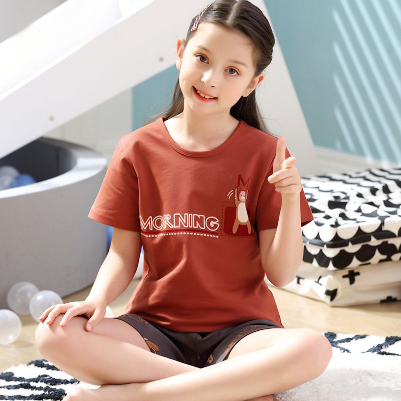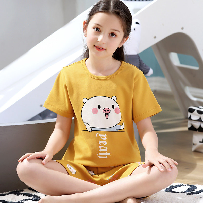 Girls' pajamas short-sleeved cotton summer thin shorts middle and big children's children's home clothes children's cartoon suits