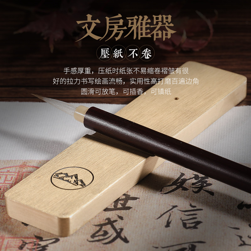 Creative retro brass paperweight copper ruler pure copper pair of brass ruler paperweight solid metal calligraphy town ruler study four treasures calligraphy supplies pressing strip small book presser calligraphy paperweight