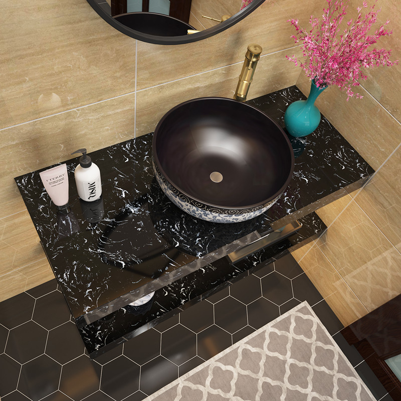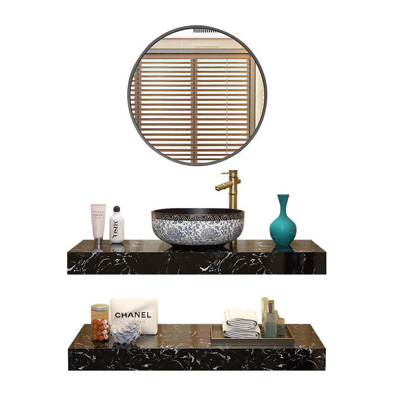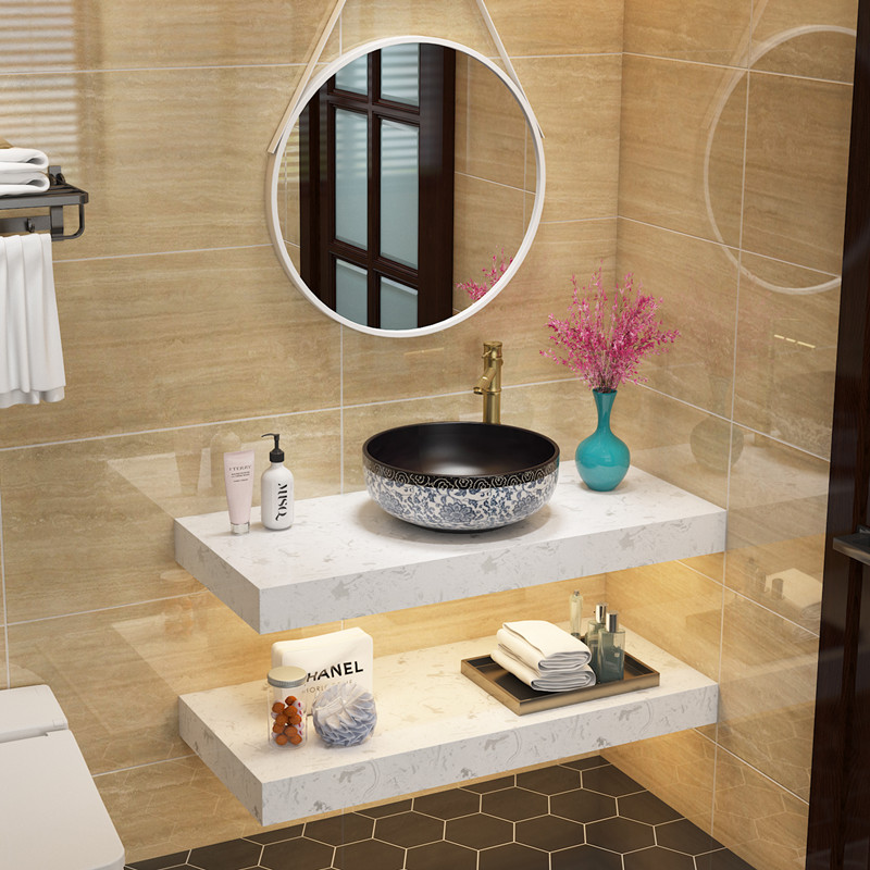 New Chinese style simple double-layer marble wash basin cabinet Household art table basin Hotel wall-mounted wash basin