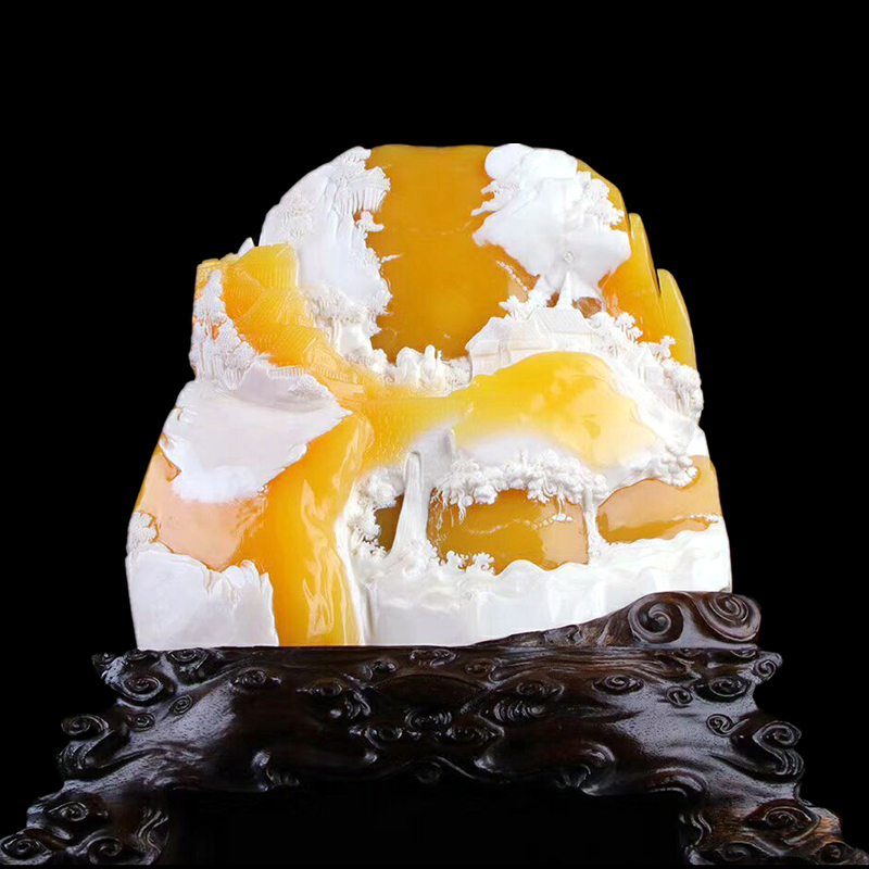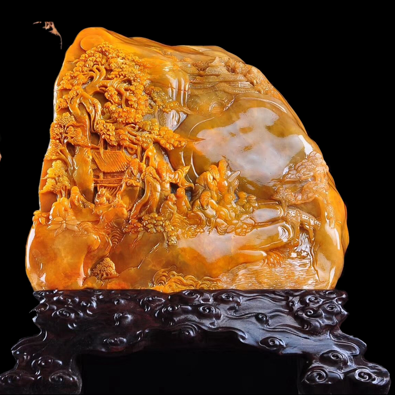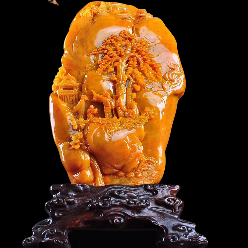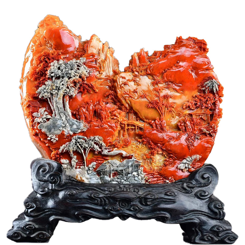 Shoushan Stone Pendulum Piece Boutique Natural Gold Frozen Raw Stone Hibiscus Stone Living Room Engraving Jade Business Gift Craft Gift Pendulum Decoration