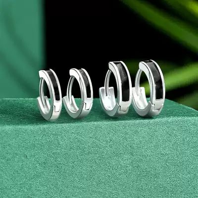 Sterling silver ear buckle female simple cold wind small ear needle 2021 New Tide Korean temperament earrings male black earrings