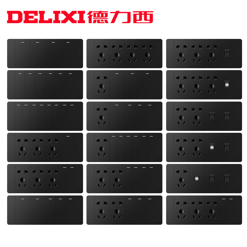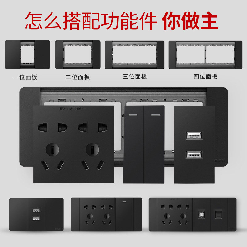 Dri West 118 Type Switch Socket Home Black Four Panels twelve Holes Nine Holes With Switch Four Inserts 12 holes
