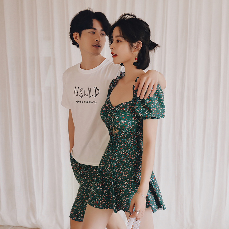 Girl's yellow swimsuit (size biased advice for big one code) mom retro yellow bathing suit dad retro yellow sandal beach pants men white short sleeve mother retro green bathing suit girl green dad retro green sand