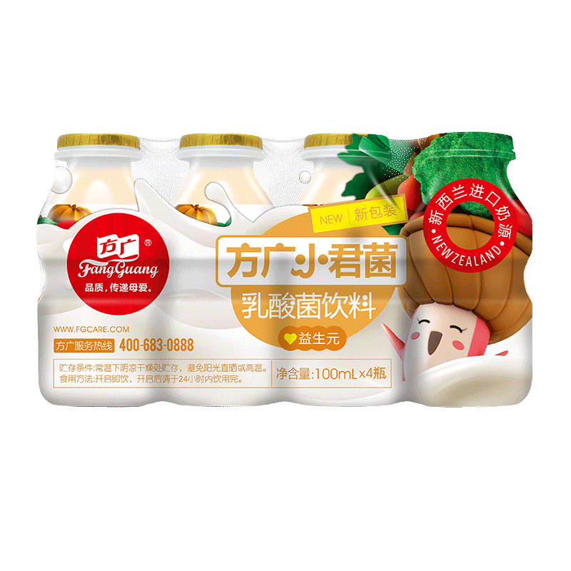 Fang Guang Baby Snacks Children's Lactic Acid Bacteria Drink Baby Prebiotic Junjun Bacteria 100ml*4 Bottle Plate