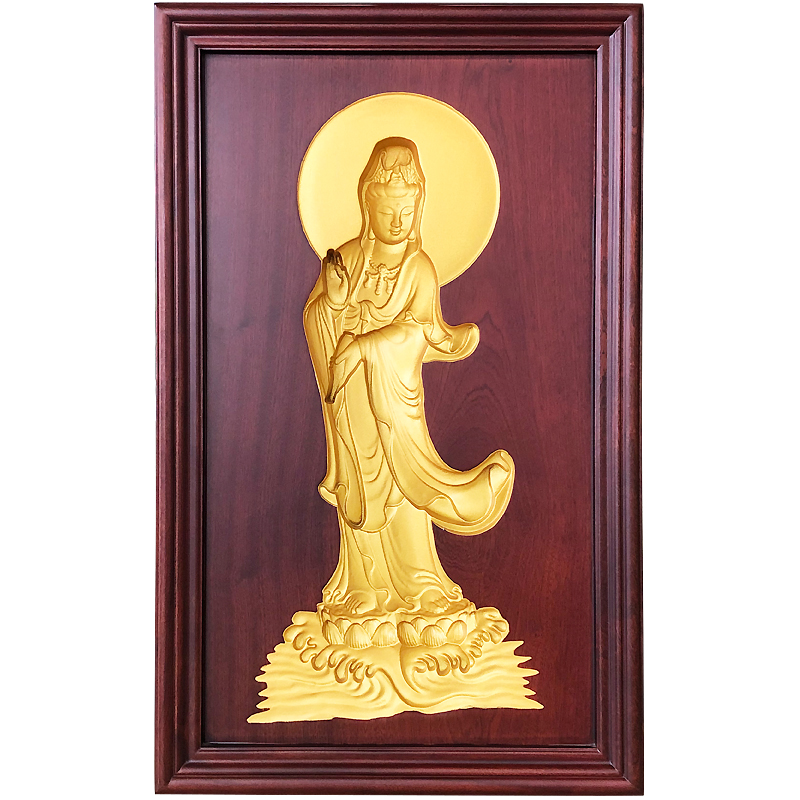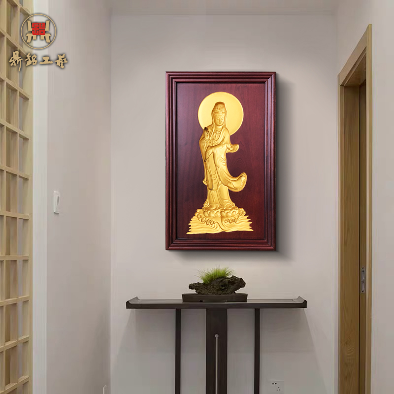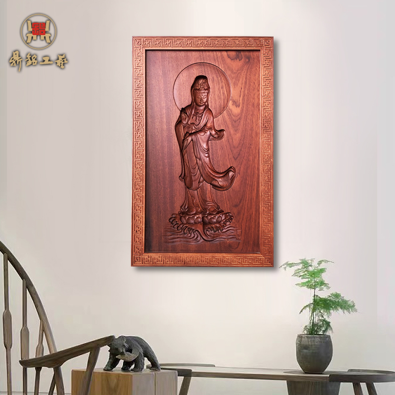 3D Guanyin Bodhisattva reverse intaglio decorative hanging plaque Buddha Hall Living room lobby Buddha plaque intaglio highlights three-dimensional carving technology
