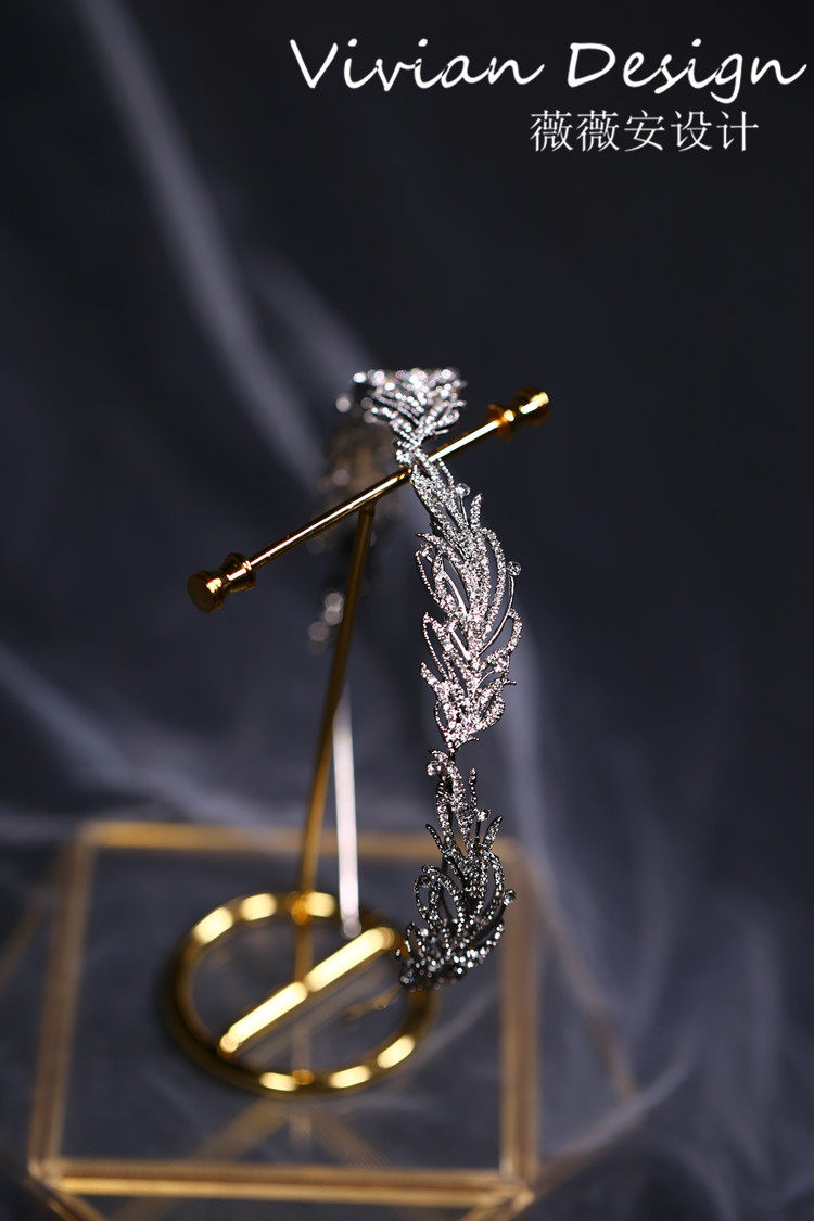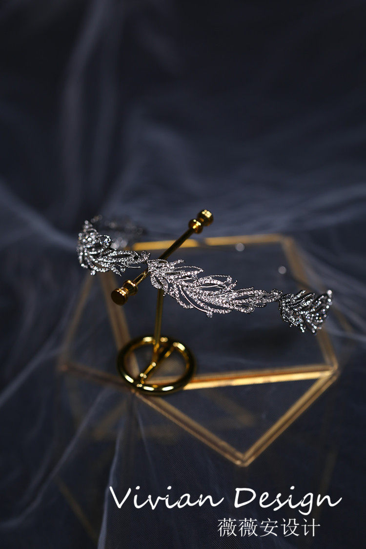 Minimalist Delicate Korean Style Stars Leaf Bridal Hair Stirrup Headwear Wedding Gown Inlaid Drill Photo Gallery Writing Genuine and Makeup Accessories