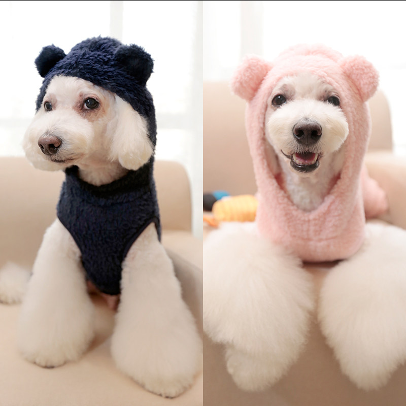 Unpet Baojuan autumn and winter warm pet clothes teddy bear plus velvet soft blue powder vest bear hoodie pants