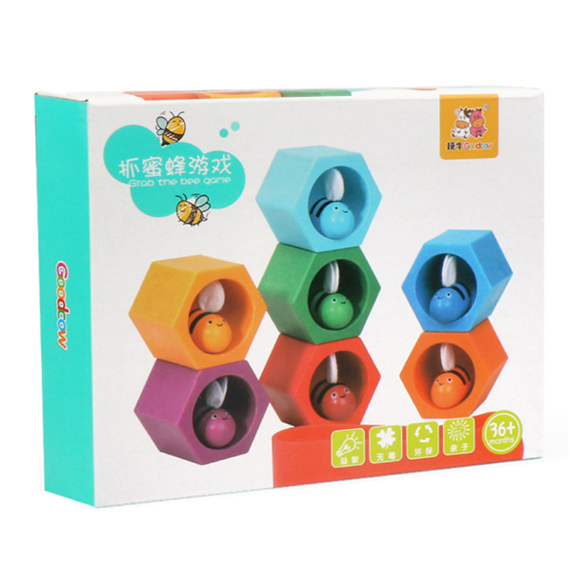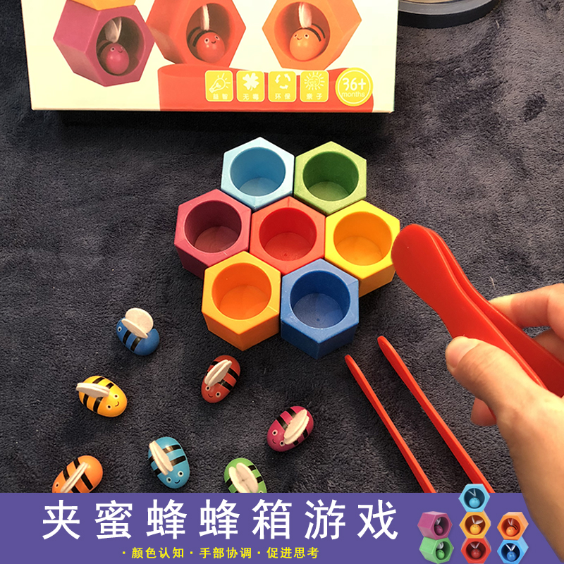 Baby Montessori teaching aids Beehive clip Bee game Color matching graphics stacking Finger refinement training toys