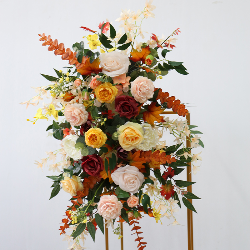 Fake flower decoration wall hanging flower autumn red row flower road leading arch stage decoration floral wedding flower silk flower wall flower