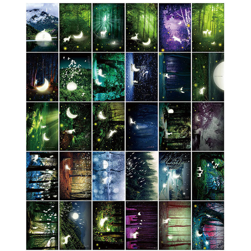 30 boxed night light postcards creative aesthetic illustration greeting card fresh student gift card message blessing card