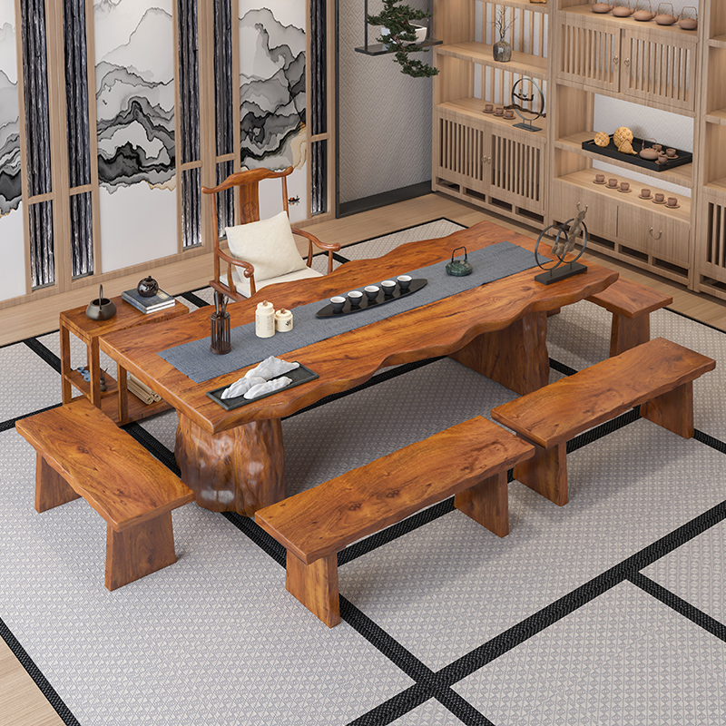 New Chinese style tea table and chair combination Zen office simple modern tea making table solid wood tea room furniture large board tea table