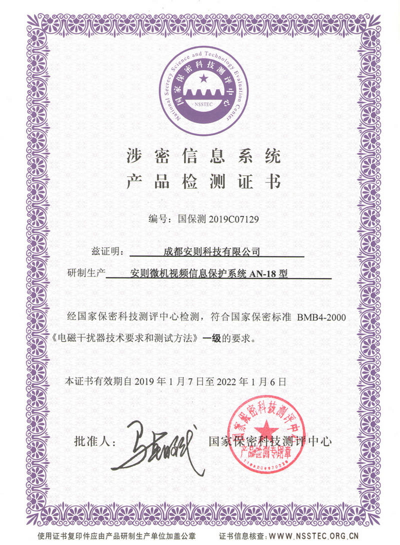 Computer film information protection system An is AN-18 computer film disturber national secret certified