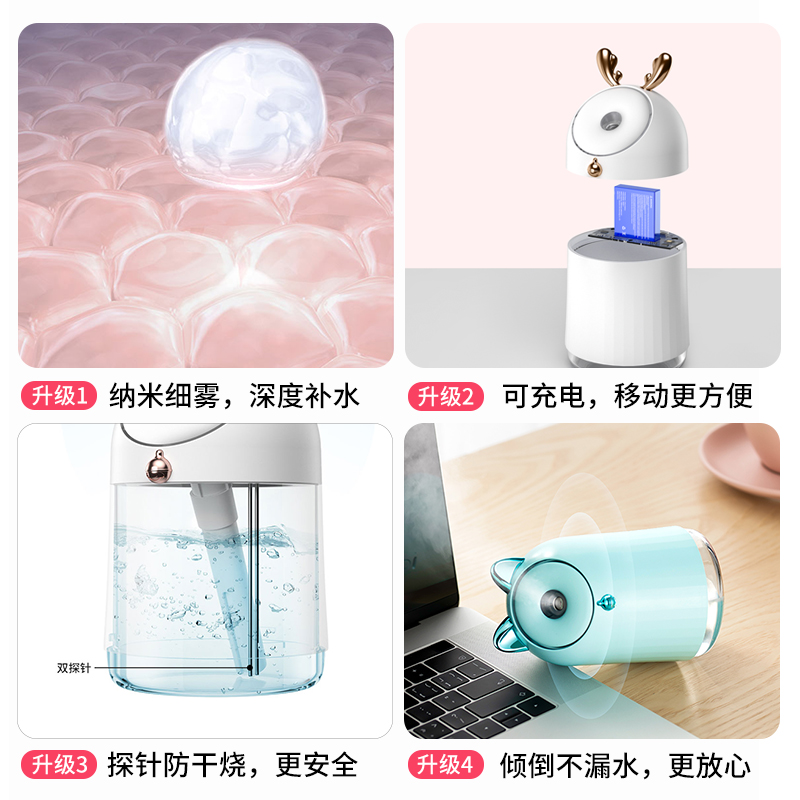 Minimalist J4 cute for small USB Mini Humidifier Office Desktop Cute Student Dorm Room Home Bedroom Mute Portable Little Deer Decontamination Air Rechargeable wireless nebulizer