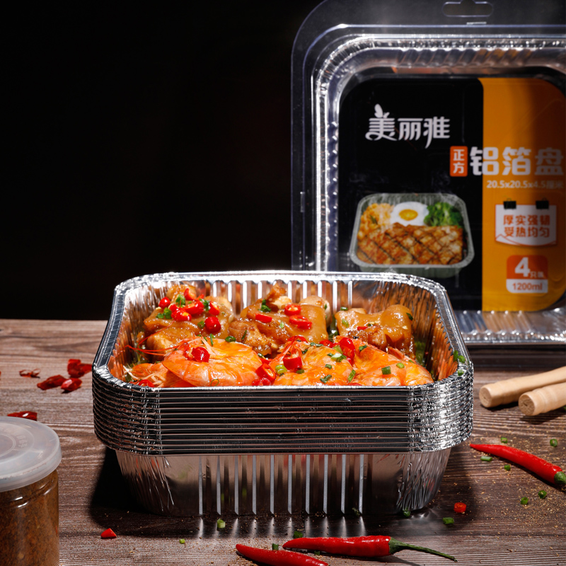 Beautiful square aluminum foil tray 4 for baking barbecue tin paper takeaway baking tray