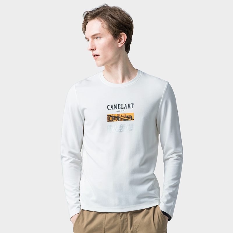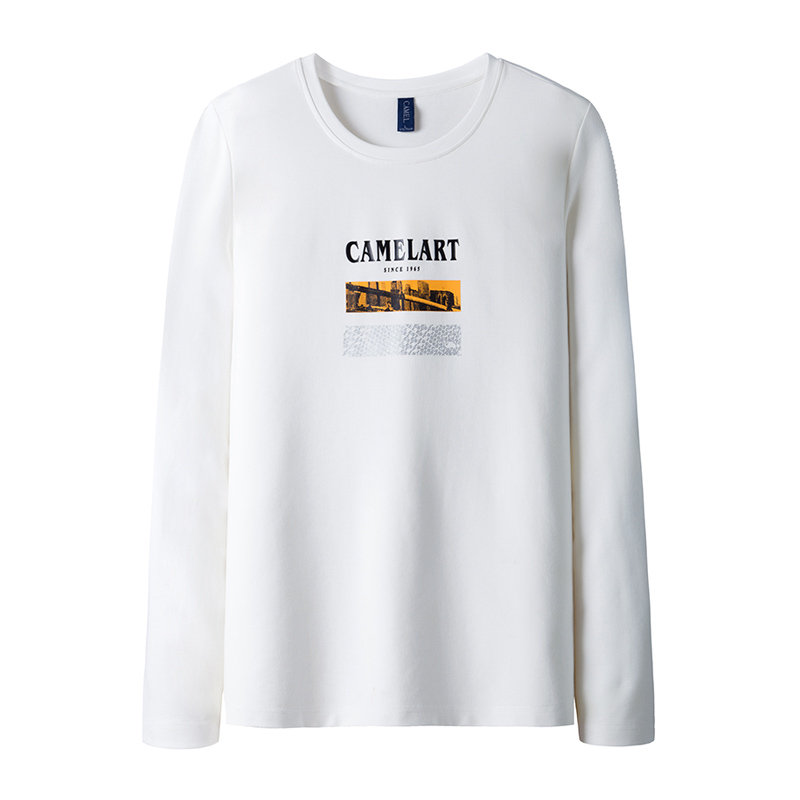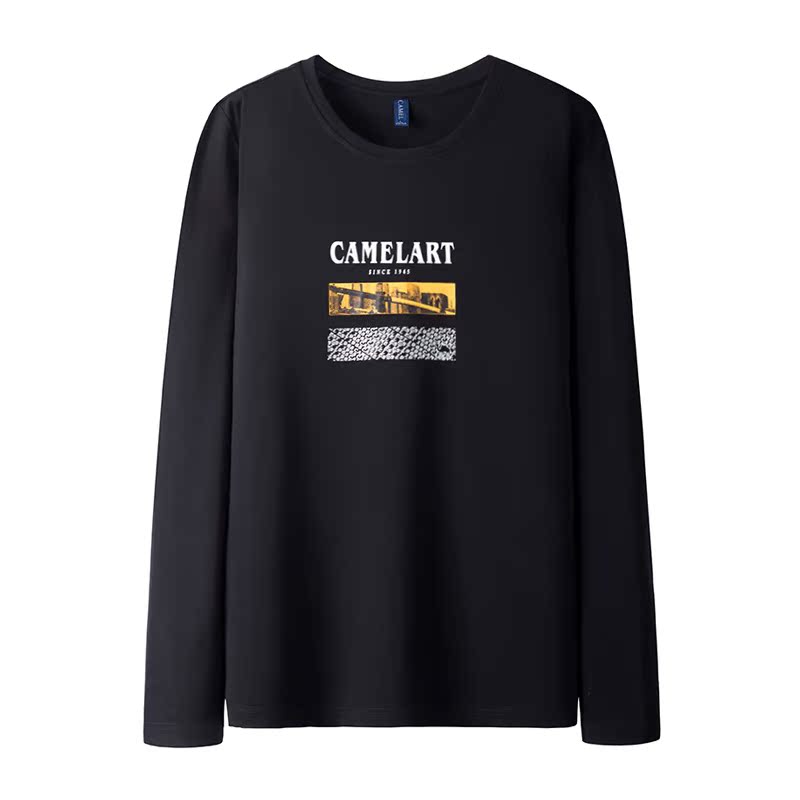 Camel men's clothing fall new long sleeves T-shirt male trend casual loose round collar printed with clothes on the bottom