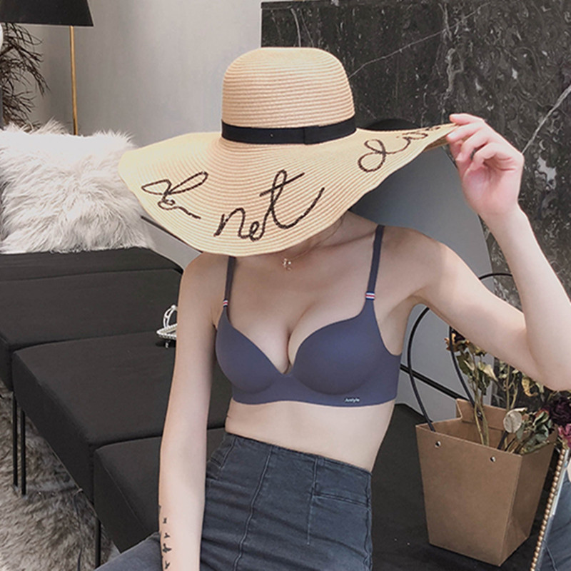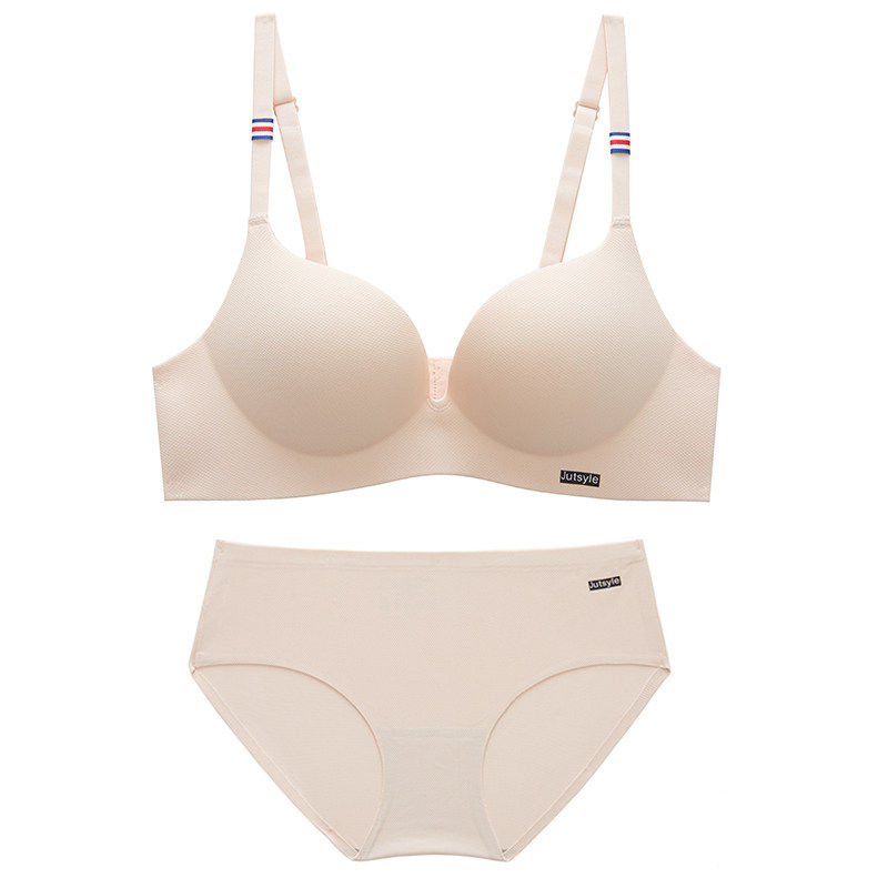 No steel ring small chest gathered underwear set girl thick seamless underwear adjustable type entrusted thin section C cup bra