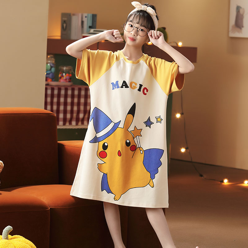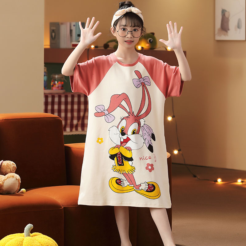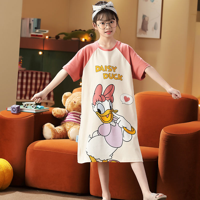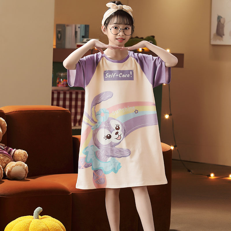 Children's Pure Cotton Sleeping Dress Girl Summer Short Sleeve Princess Baby Home Conserved Girl Sleepwear Parent-child Dresses Slim Fit
