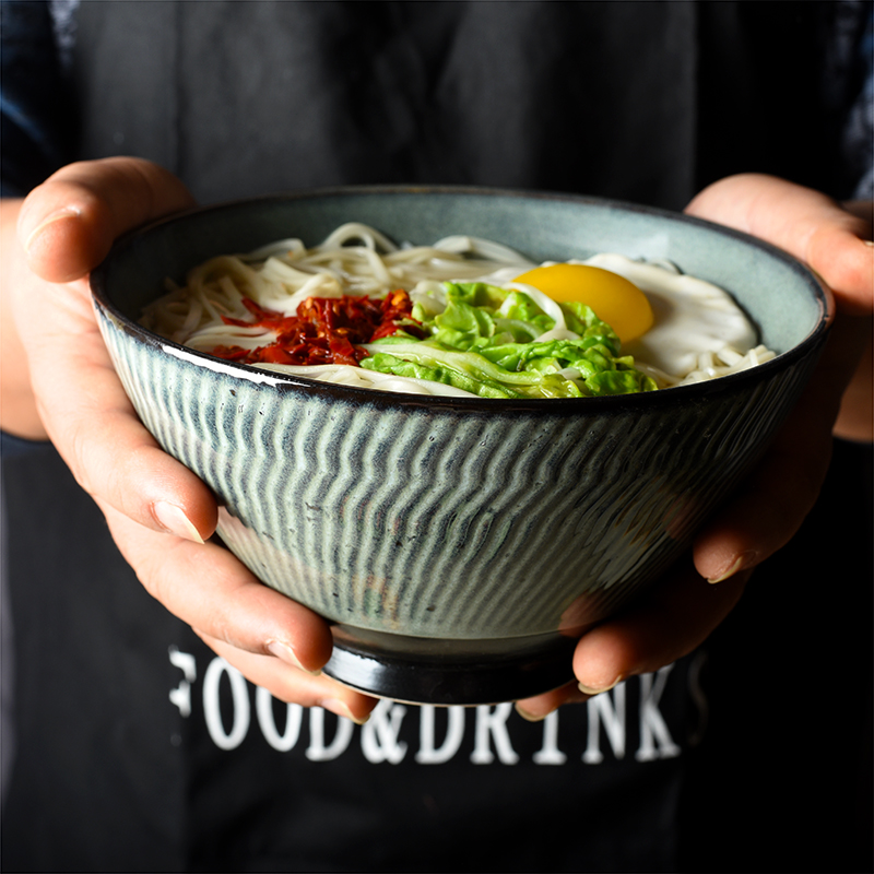 7-inch line embossed ramen bowls 4 7-inch embossed line small bowls 7 8-inch outer white inner blue embossed noodle bowls 7 8-inch black embossed threaded noodle bowls 7 8-inch dark green embossed threaded noodle bowls 7 8-inch