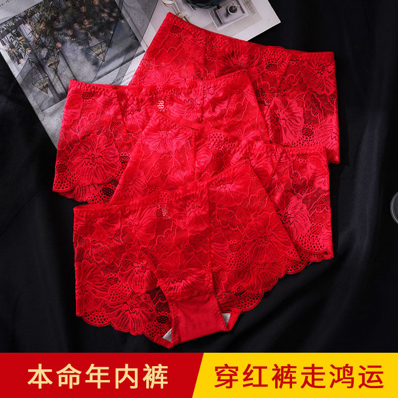 Panties women lace cotton antibacterial crotch ladies sexy non-marking mid-waist tiger triangle honmei year red shorts red