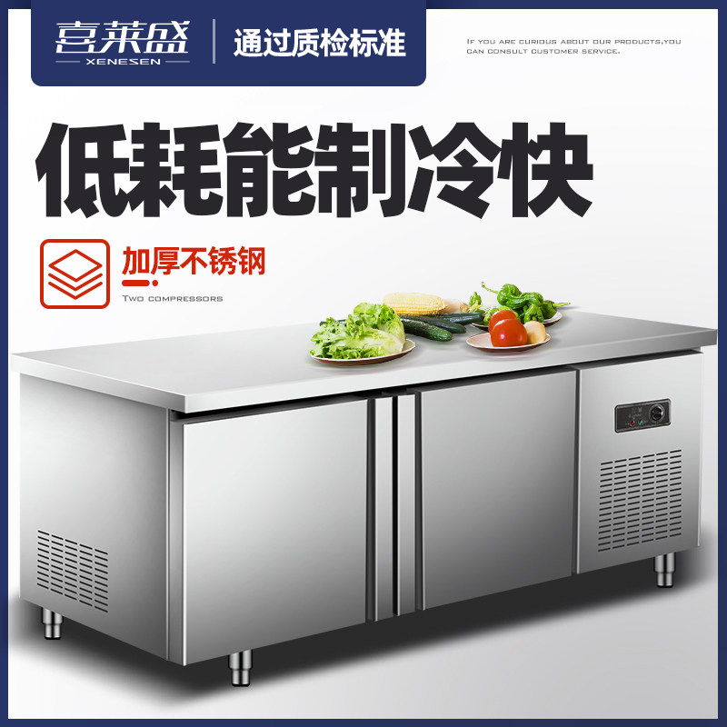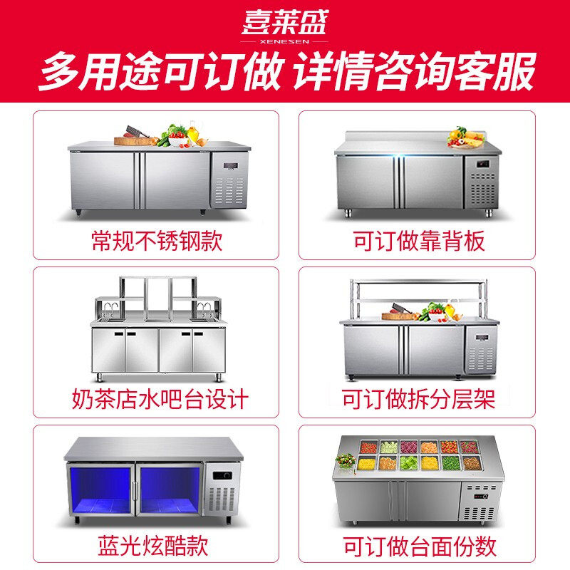 Xi Laisheng fresh-keeping workbench refrigerated frozen water bar console freezer four commercial refrigerator flat cold milk tea shop