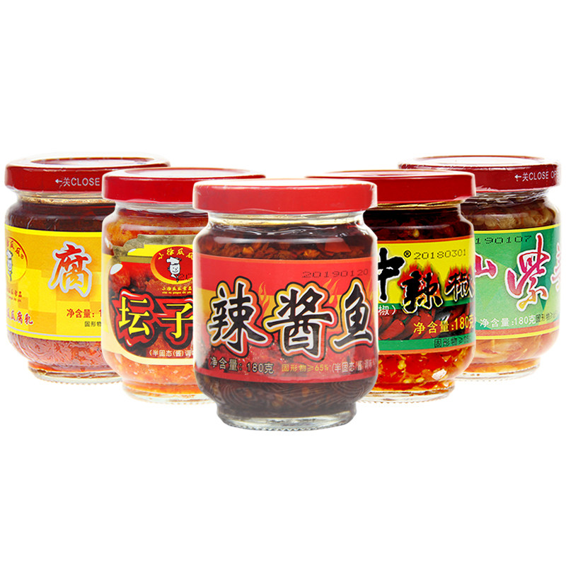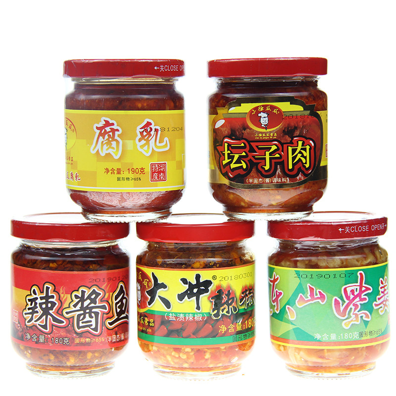 Dachong chilli sauce *2 bottles of fish with chilli sauce *2 bottles of bean curd *2 bottles of pork with jars *2 bottles of Dongshan purple ginger *2 bottles of Dongshan purple ginger with chilli sauce *2 bottles of Dongshan purple ginger with chilli sauce + fish with chilli sauce with chilli sauce + fish with chilli sauce with chilli sauce + fish with chilli sauce with chilli sauce + fish with chilli sauce with chilli sauce + fish with chilli sauce with chilli sauce + tofu with 5 flavors of Dongshan purple ginger with chilli sauce + pork with jars