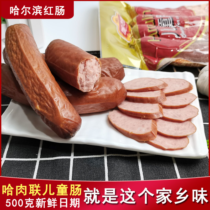 Hammered Enterosaurus red sausage Children's intestines Northeastern special production sausage Harbin meat United red sausage garlic fragrance without fattening meat Ding 500g bags