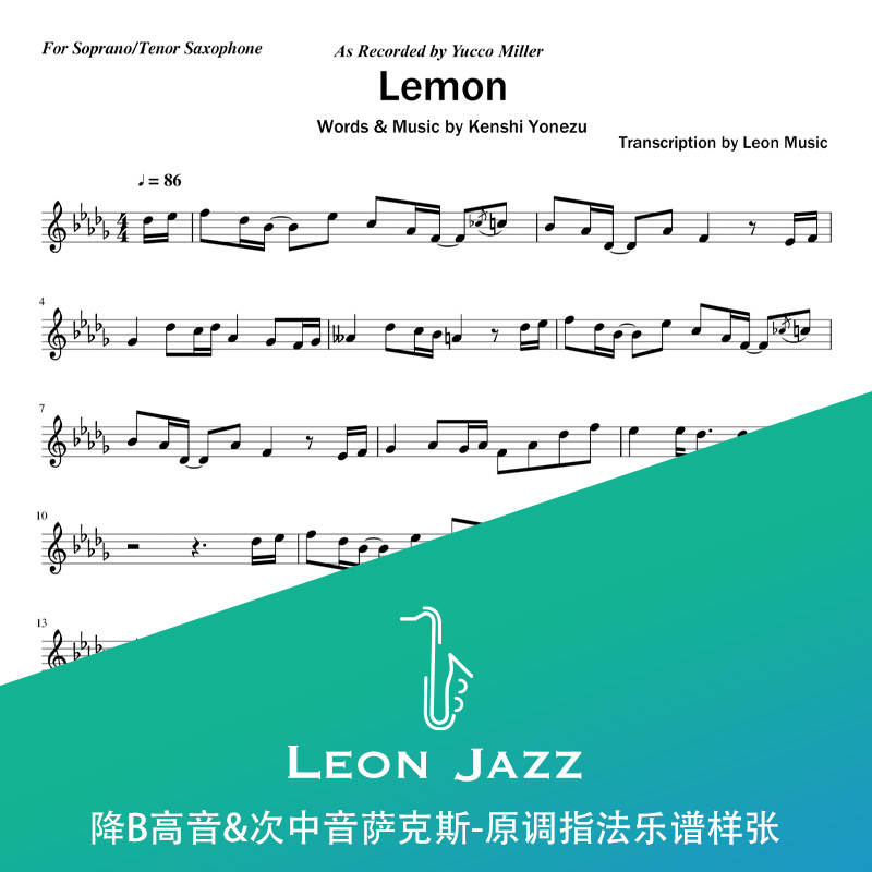 Lemon saxophone score precise score tubing Yucco Miller version with demonstration accompaniment