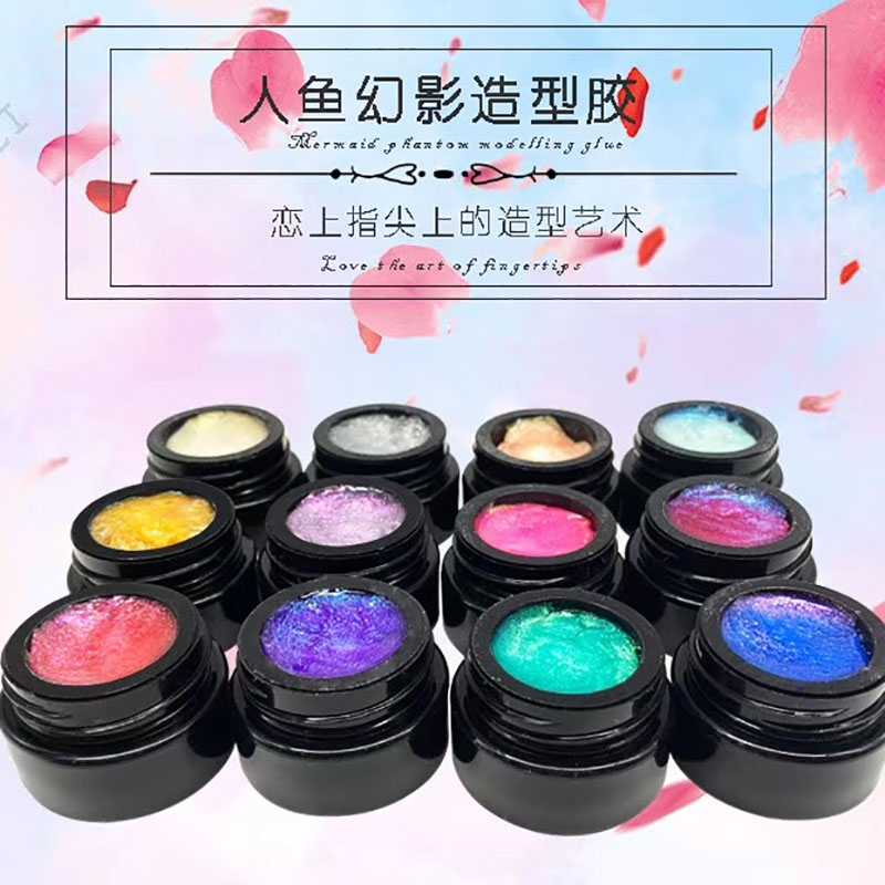 Hot sale 12-color human fish Phantom molding glue extension glue 8ML gradually layer gem glue disposable nail shop special carving