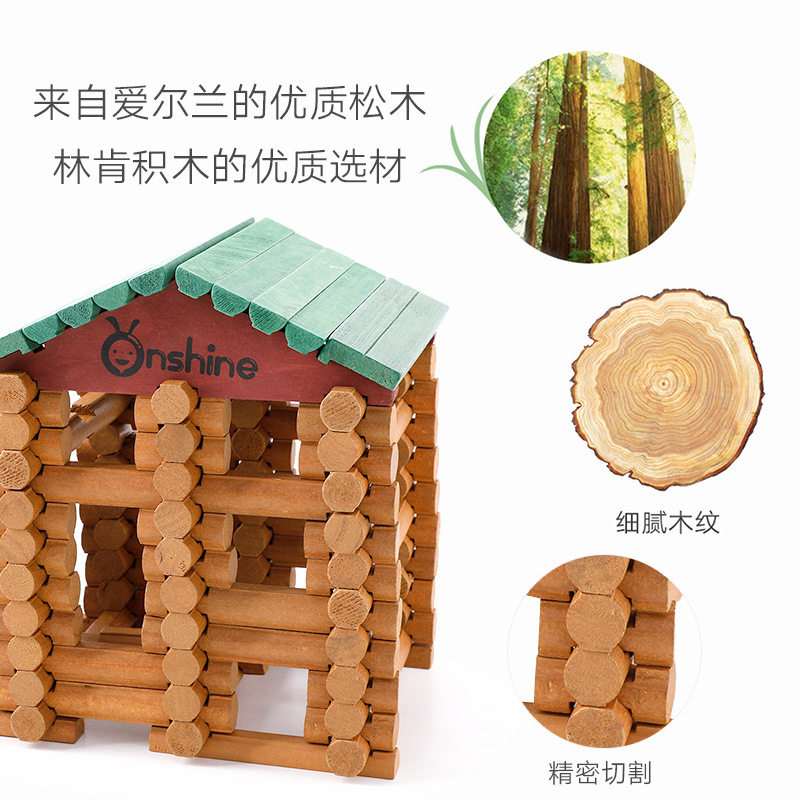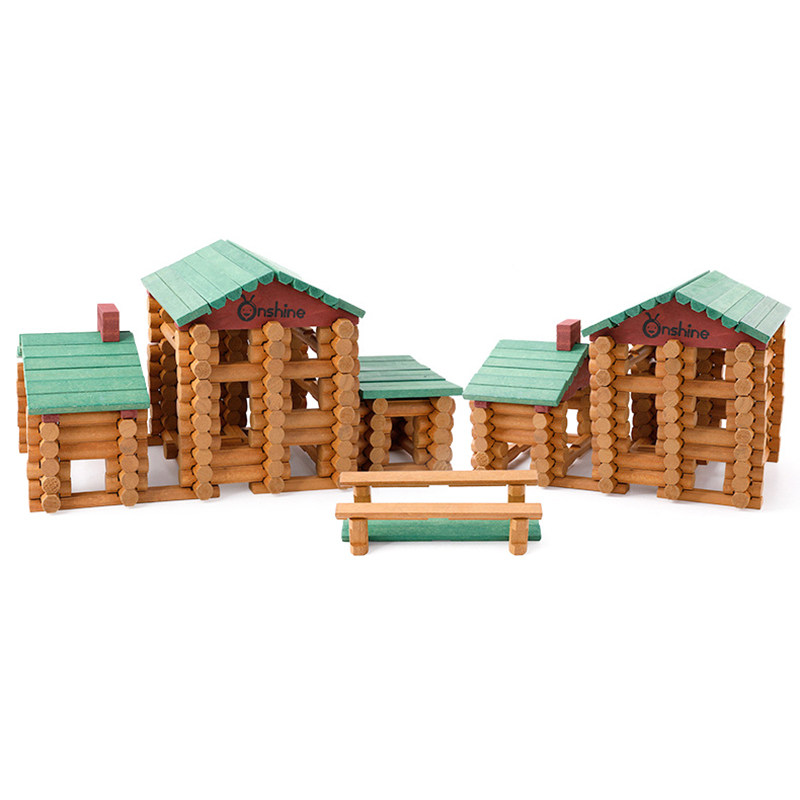 Forest Cabin (90 pieces) Farm and Shop Cabin Set (170 pieces) Lincoln Red Store (129 pieces) Lincoln Blue Hospital (240 pieces) Lincoln Green School (270