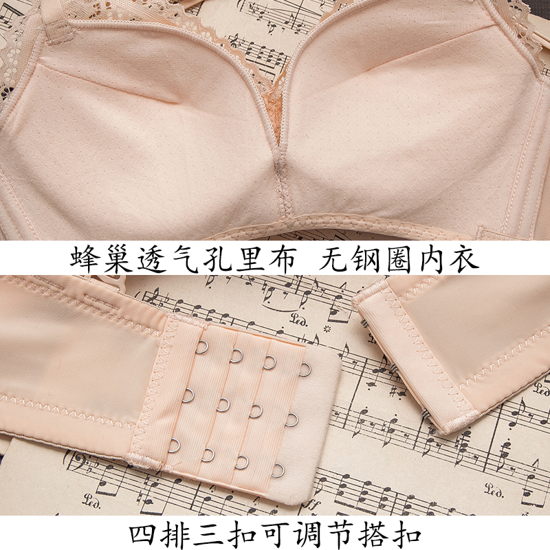 Summer beauty back underwear set women's no steel ring small chest gathered medium and thin bra cross-strap bra three-breasted
