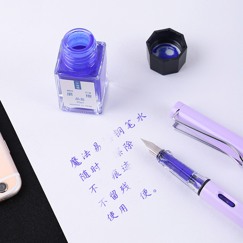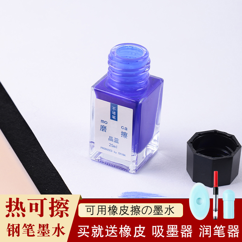 2 bottles-Thermal erasable pen ink 25ml Non-blocking pen ink Magic rub erasable easy magic erasable ink capsule Crystal blue blue Black ink Blue erasable ink for students