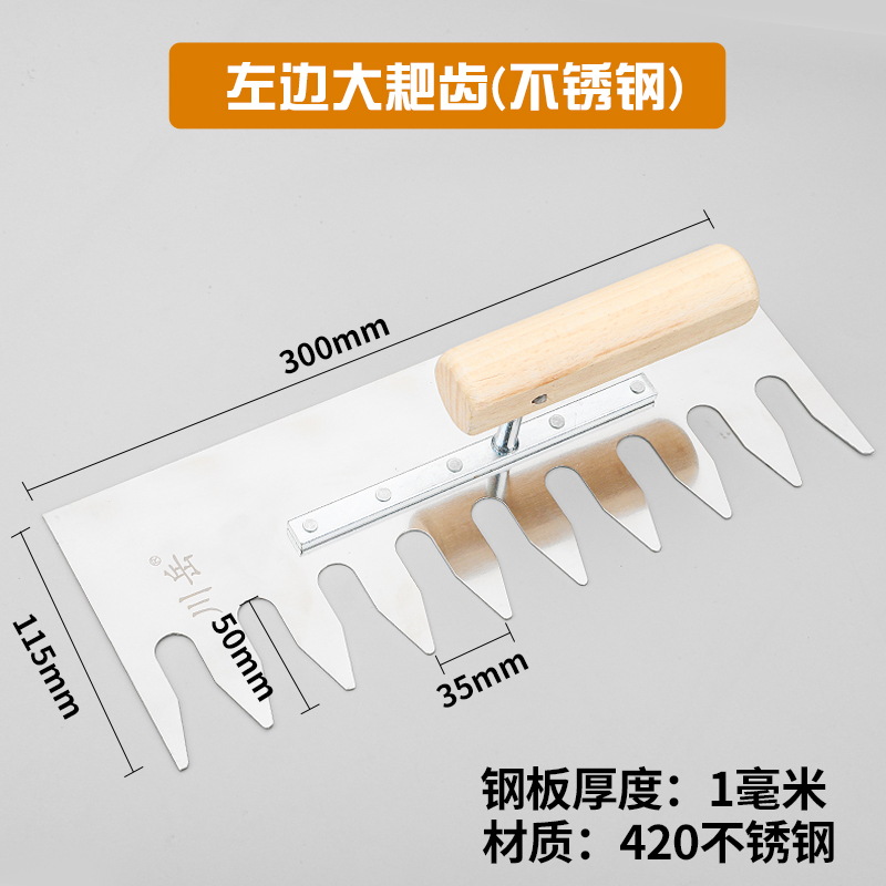 Large pointed tooth (stainless steel) on the left big pointed teeth (stainless steel) on the left large rake teeth (stainless steel) Right big rake teeth (stainless steel) left square teeth (stainless steel) Right square teeth (stainless steel)