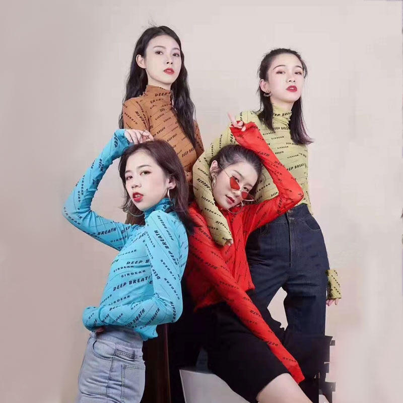 Counter brother new 2022 new mesh T-shirt women's long-sleeved spring and summer slim letter bottoming shirt