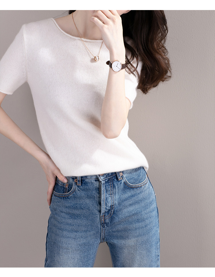 2020 spring and autumn new round neck pullover cashmere short-sleeved sweater women's loose Korean style half-sleeved knitted bottoming shirt thin section