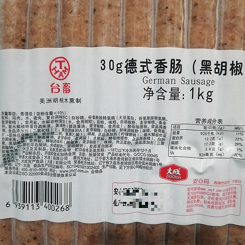 Large Adult Terrace Herd Sausage 30g Black Pepper Taste Meme-Style Baking Sausage Baking With Sausage Hot Dog 1 kg Dress