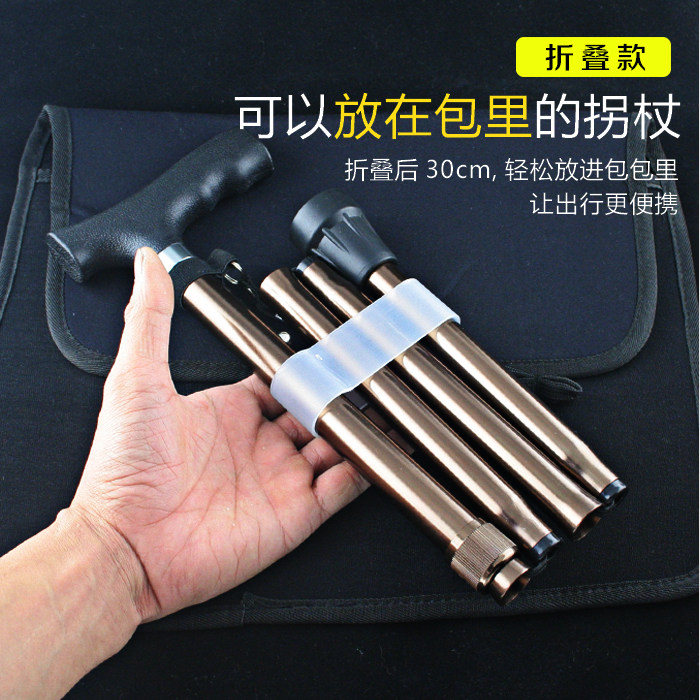 Folding crutch ultra light old man cane carbon old anti-slip aluminum alloy turning stick telescopic triangular mountaineering crutches