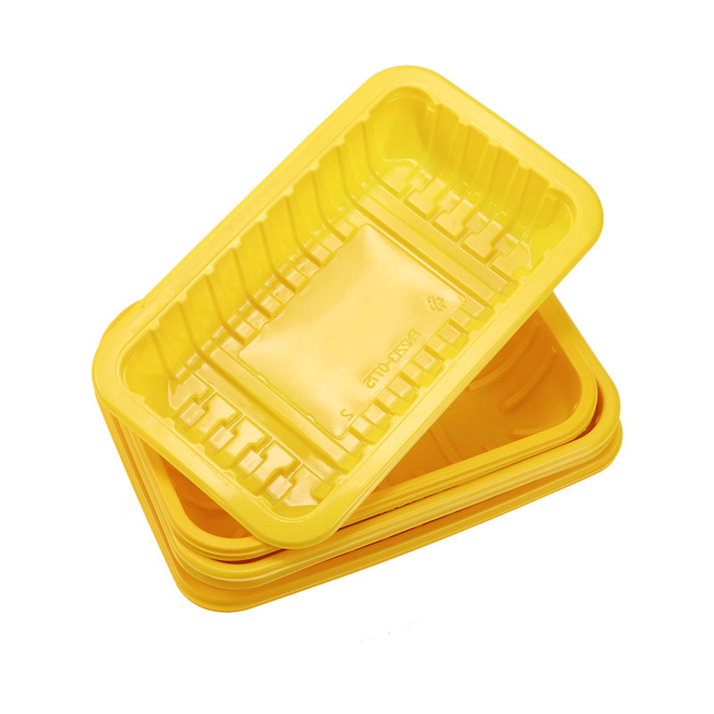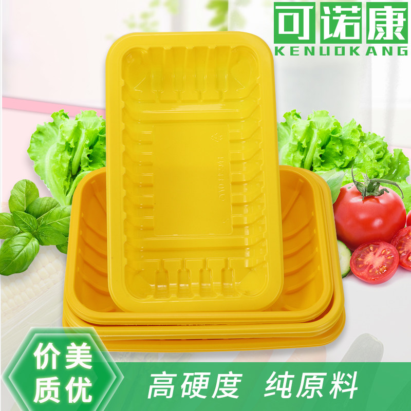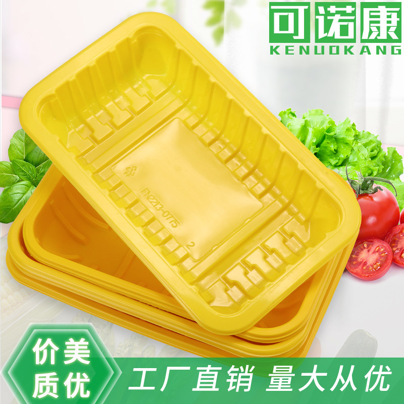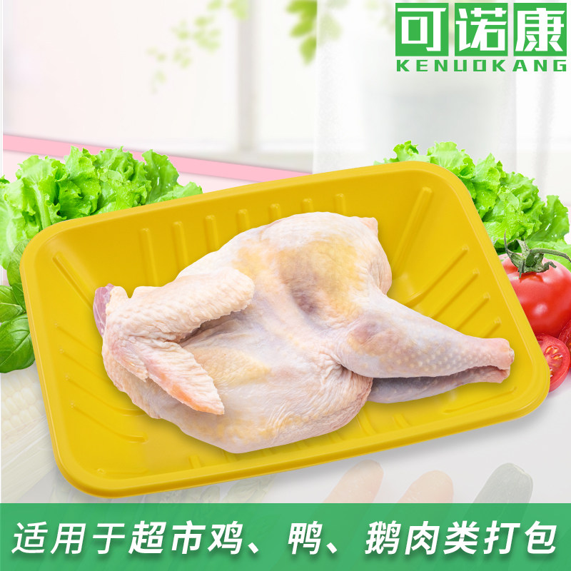Supermarket disposable fresh tray chicken box meat packaging PP rectangular plastic yellow chicken box can be refrigerated
