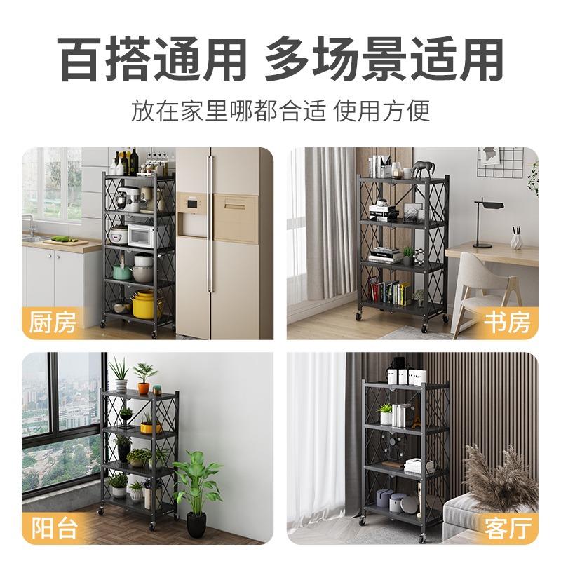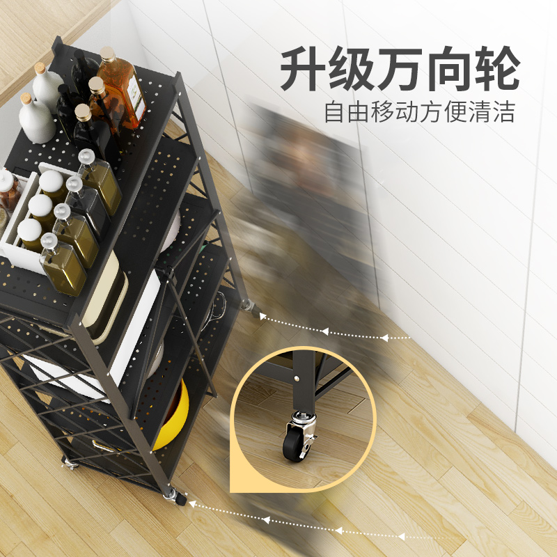 Installation-free kitchen shelf Floor-standing folding storage shelf Pot rack Household multi-layer microwave oven shelf