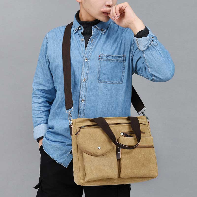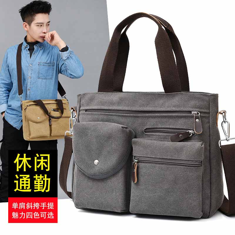 Canvas Bag Men Handbag Fashion Casual Single Shoulder Skewed Satchel 100 Hitch Hand Carry Briefe Briefcase New