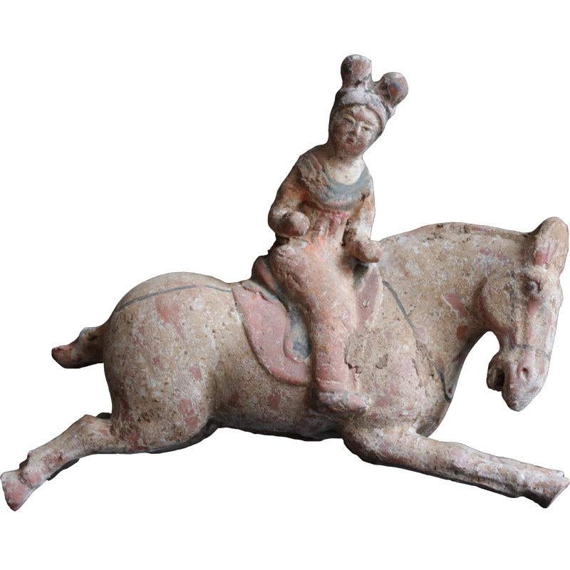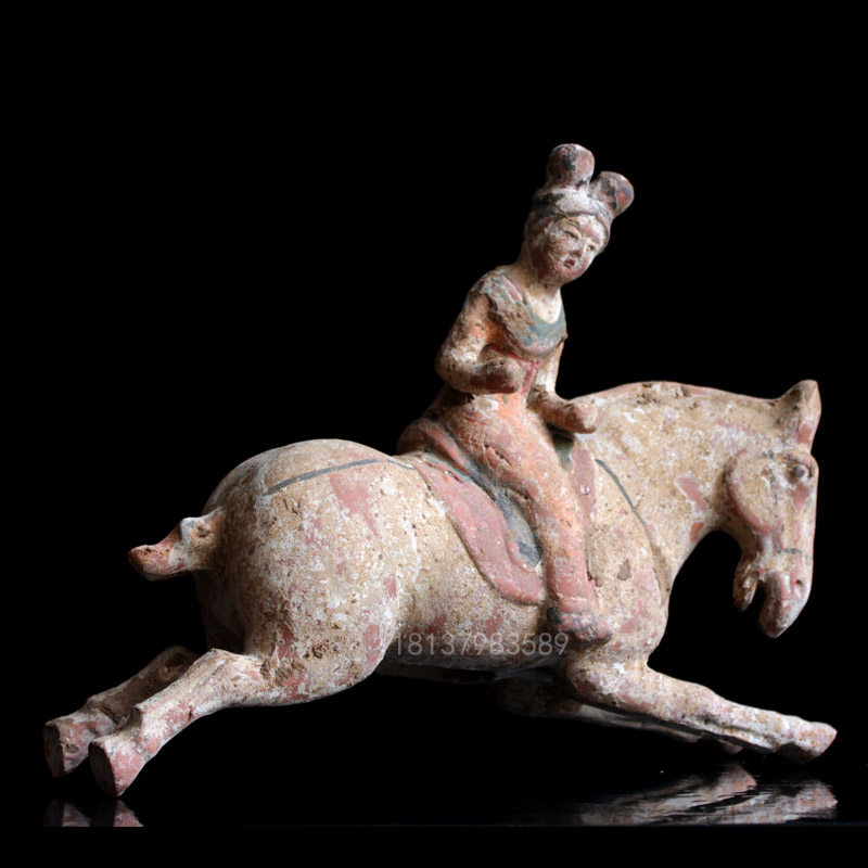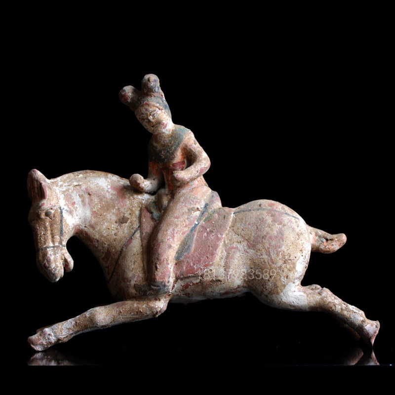 Antique terracotta ornaments Tang Dynasty ancient pottery Polo figurines Cultural relics copy home decorations Antique collection of works of art