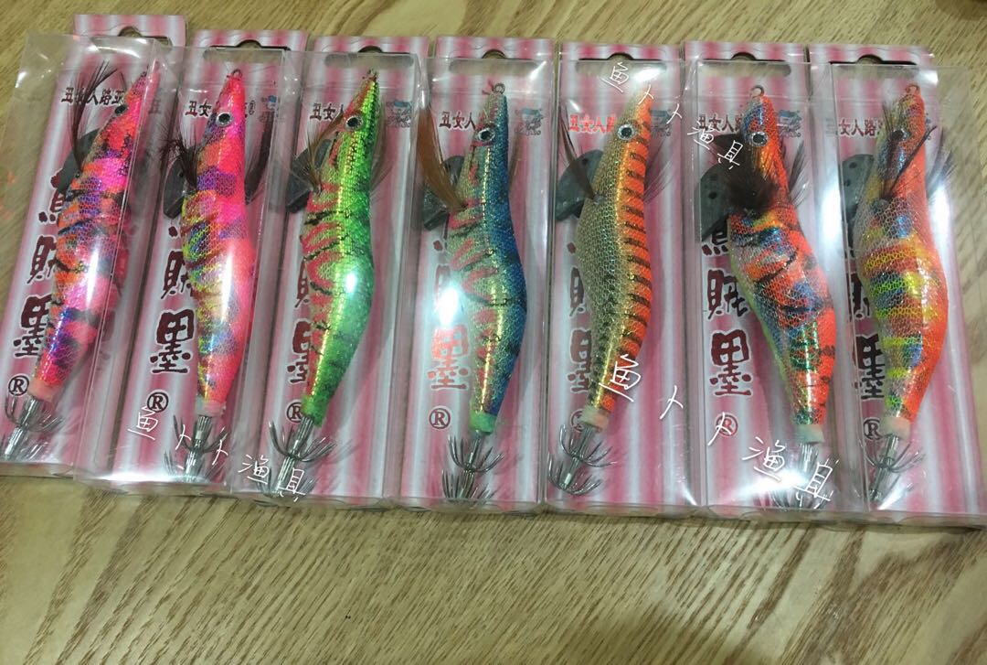 Ugly woman wood shrimp No. 3 No. 5 luminous belt ring bead squid hook cuttlefish hook bag cloth simulation wood shrimp Luya wood shrimp