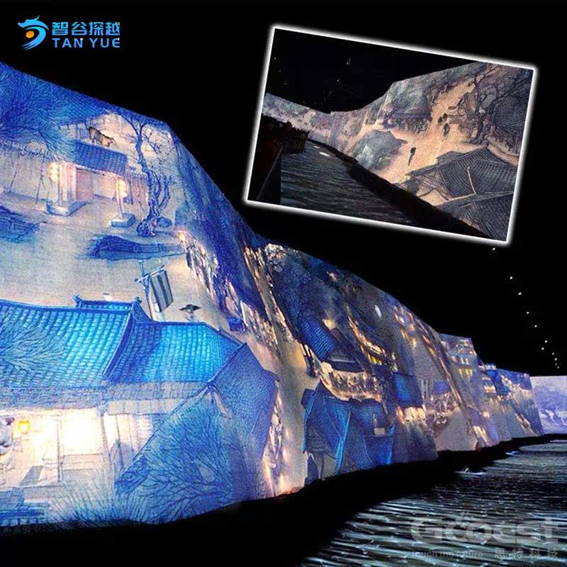 Tangyue 3d holographic projection interactive profiled fusion L type U type arc curtain T type curtain cloth projection equipment manufacturer